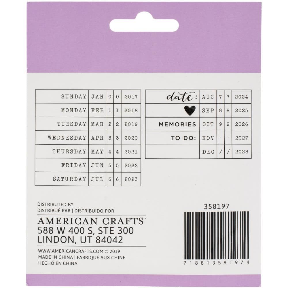 American Crafts super useful planner roller date stamp covers years from 2017 to 2028, perfect for for current and past projects.