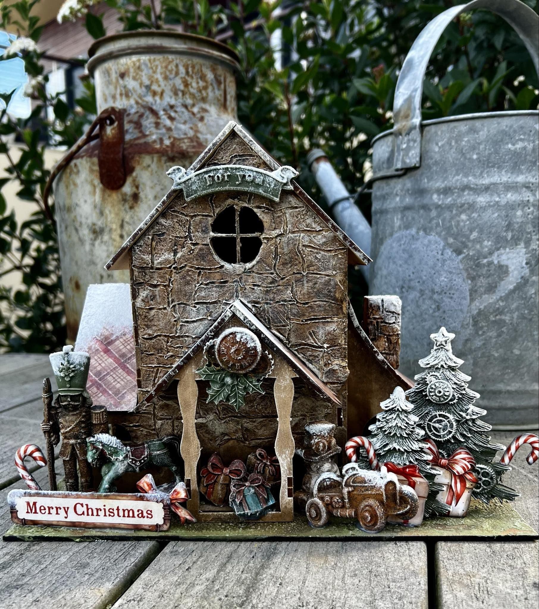 What to say about this beautiful House Project?! A beautiful piece for you house or your craft studio , during Christmas or why not for the whole year! A lot of little techniques packed on this project, Different painting techniques for each mould , distress techniques for the walls of the house and roof tops , beautiful technique for the ground around the house so it looks like grass! Created from an MDF kit. PROJECT DESIGNED BY ANTONIS TZANIDAKIS.
