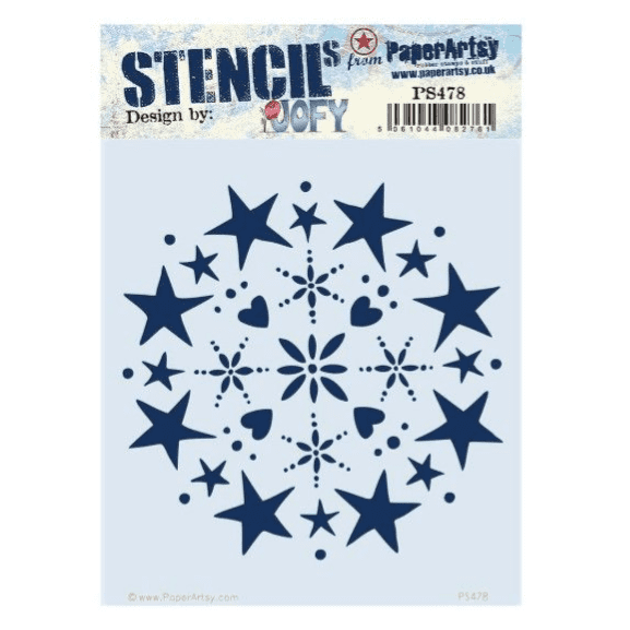 A fabulous stencil designed by Jo Firth-Young exclusively for PaperArtsy featuring a swirling stars and spots background design.