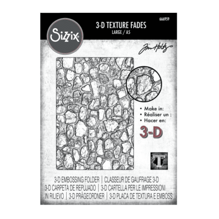 Add authentic texture with the 3-D Texture Fades Embossing Folder – Cobblestone by Tim Holtz now in a larger A5 size.