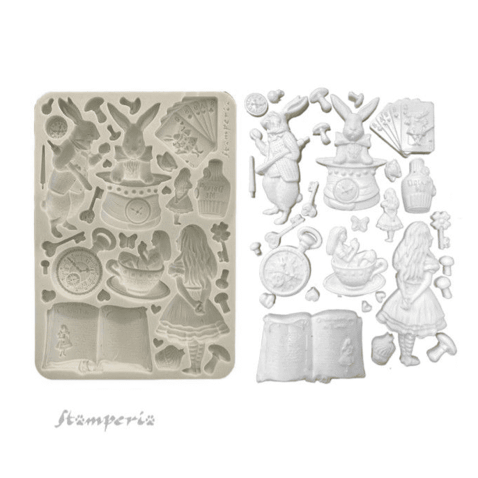 An amazing deep highly detailed large silicone mould from Stamperia's Alice in Christmas collection.