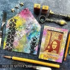 One collage stamp that measures approximately 2 1/2 x 3 1/2 inches.